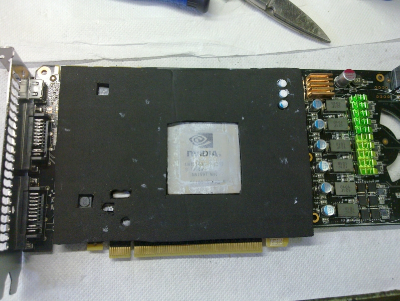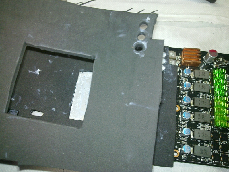 Il tolotto è stato montato e testato su una PNY GTX 480. Il montaggio è stato relativamente semplice, con tutti i pezzi che si incastrano alla perfezione. Unicà difficoltà è stata trovata con le viti più sottili, che ci sono sembrate leggermente corte: avvitare i bulloncini sul retro della scheda, con in mezzo la coibentazione in neoprene, non è stato facile. Lo spessore massimo di neoprene che si riesce a installare per poi poter avvitare i dadini è di circa 3-5mm.